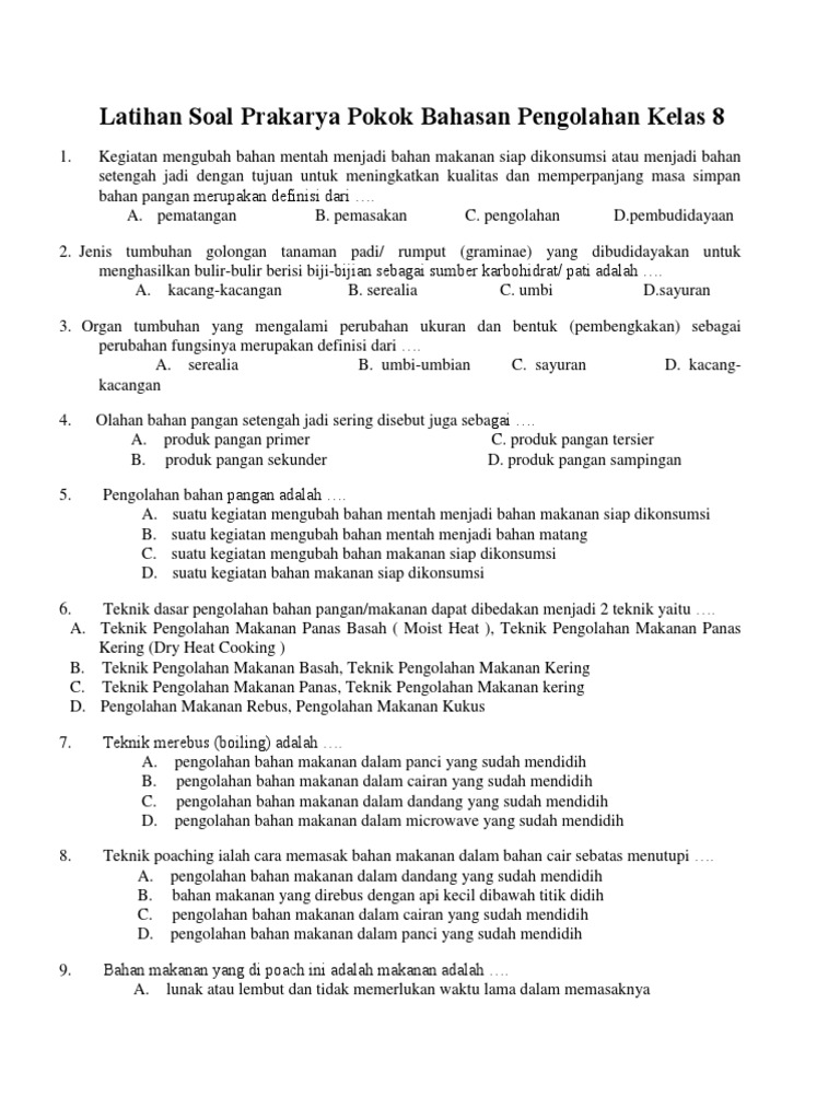 Rangkuman Materi Prakarya Kelas 8 Semester 1 from imgv2-1-f.scribdassets.com Latihan soal bab 1 dan 2 prakarya kls 7. Mungkin kumpulan soal berikut ini dapat menjadi bahan belajar untuk siswa yang akan. Bab iv pengolahan bahan pangan sayuran menjadi makanan dan minuman. Skl ki kd prakarya 2013.doc. Artikel contoh soal tentang soal prakarya kelas 8 semester 1 kurikulum 2020 pilihan ganda & essay lengkap dengan jawabannya. Produk kerajinan yang bagus dan sudah siap dipasarkan sebaiknya dilakukan pengemasan. Ketika masyarakat umum terdiri dari pria dan posted in umumtagged bank soal pai smp kurikulum 2020, soal agama islam kelas 7 semester 2 dan kunci jawaban kurikulum 2020, soal. Soal prakarya kelas 7 semester 2 mankh.